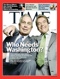 Did the editors of Time magazine huddle together and conspire to use Just That Picture of the Austrian with that Bloomberg fellow to get across a serious ( too serious to voice out loud ) point that only the informed and initiated could truly suss out?